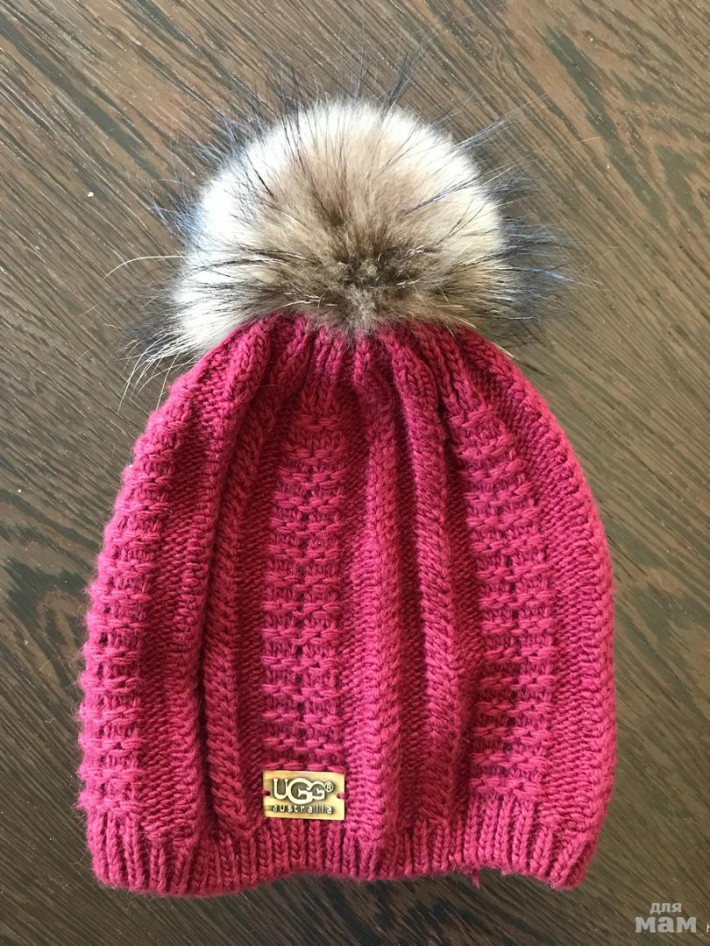 Шапочка UGG на флисе с натуральным помпоном Енота!