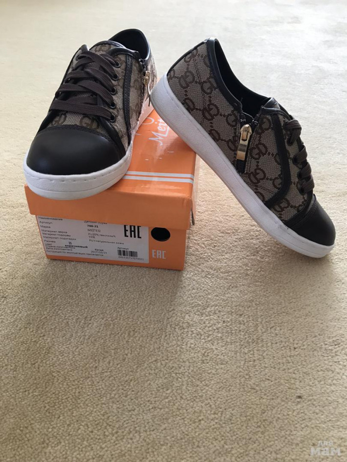 Стильные новые ( в коробке) кеды 35 размера, стелька 22 см, есть супинатор, сбоку молния для удобства одевать, внутри натуральная кожа, мы переросли так и не одели. Очень хорошего качества!