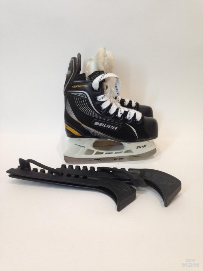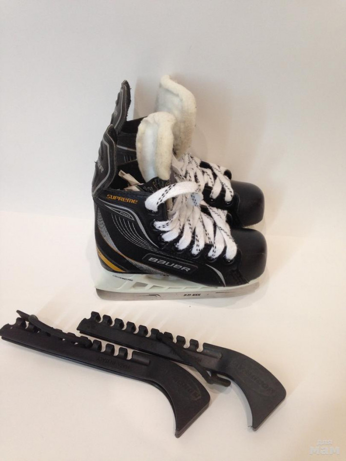Детские коньки "Bauer", б.у, на стакане Lights Speed Pro 180 L, 180 R, B Y 10, стелька 18,5 см, размер на ярлыке: US YII, UK Y10,5, EUR 28, в идеальном состоянии (немного желтоваты язычки), серьезных повреждений нету, без тора строго 3700 руб. цвет будет немного отличаться но не сильно. Учитывайте студийное освещение!