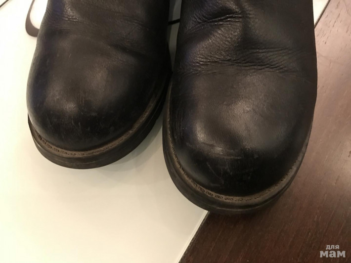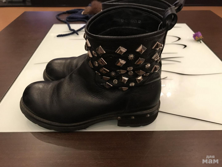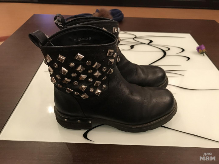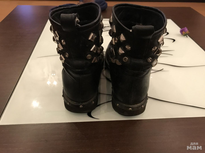 В хорошем состоянии. Натуральная кожа и натуральный мех. Но есть нюанс, отсутствует несколько клёпок. Их так много что тех которые отсутствуют не заметно.