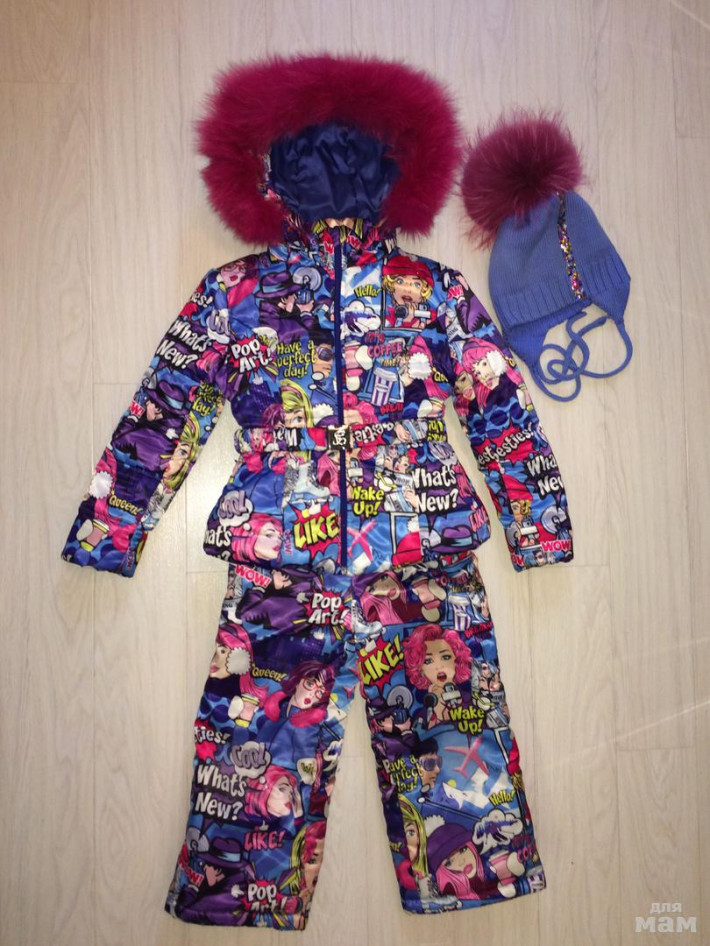 Комплект куртка и брюки фирмы Stilnyashka. Наш любимый и самый яркий. Дочи в нем были самыми красотками! Тёплый, крафсивый!.