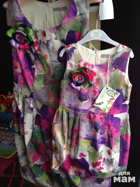 Новые платья для мамы и дочки Gioia di Mamma с брошами (на булавках, можно отстегнуть), оба полностью на подкладе, на маму размер 46-48 (но лучше по замерам!), замеры: ПОГ 46 см, талия 40 см; на дочку размер 110, замеры: ПОГ 28 см. Супер цена за оба платья 3000 руб.!! + почта. В магазине цена только одного 5000 руб.