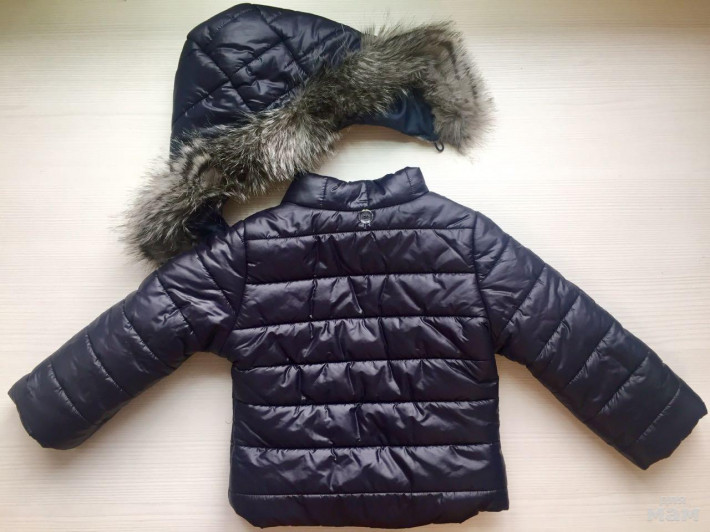 Новая куртка фирмы LuLy-Oh, производство Италия. Наполнитель синтепон. Мех искусственный. Капюшон съёмный, мех не съёмный. Цвет темно-синий. Длина изделия по спинке 34 см, длина изделия по груди 30 см, длина рукава 31 см. Размер 18 месяцев Цена 2600 рублей