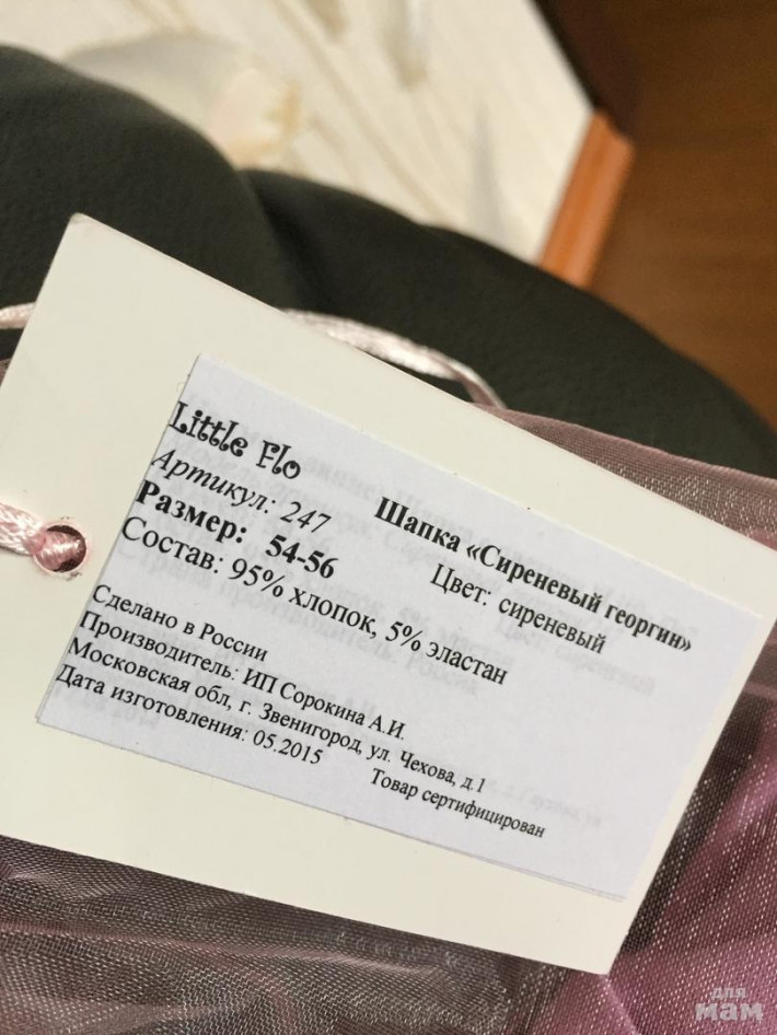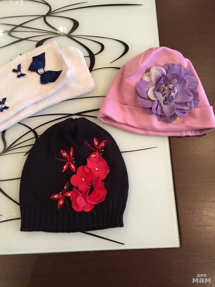Шапочка сиреневая с цветком. Новая. Цена 500₽