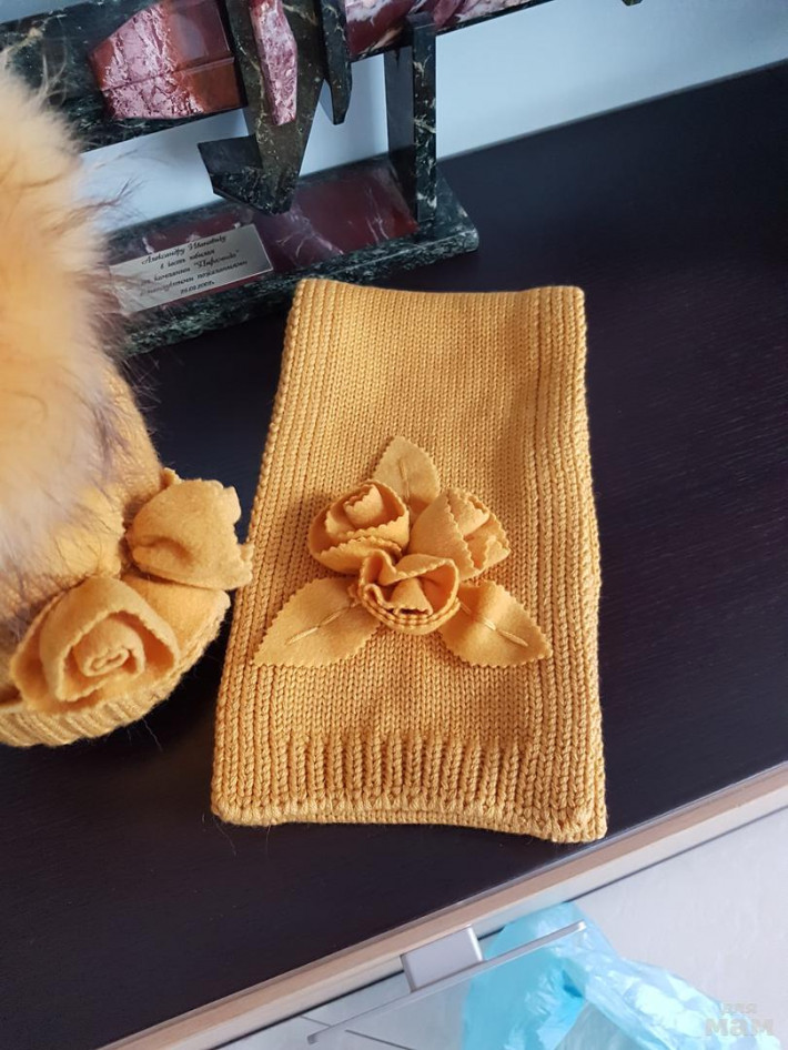 Машинная вязка. Вязал мастер из Екатеринбурга. Цвет горчичный. Вязка одинарная, но очень плотная. 100% шерсть мериноса. Огромный помпон из енота (на фото немного примят). Б\у совсем мало. Состояние и шапочки и шарфика отличное.