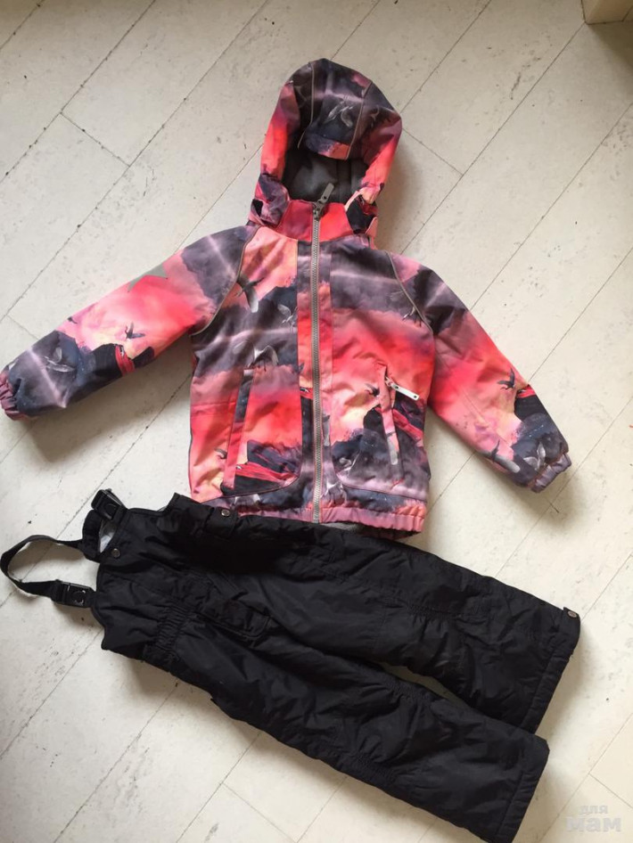 Яркая, красивая , теплая куртка MOLO ,зима . БУ . Очень продуманная , внутри флис ( на капе тоже ). Полукомбинезон в подарок .
