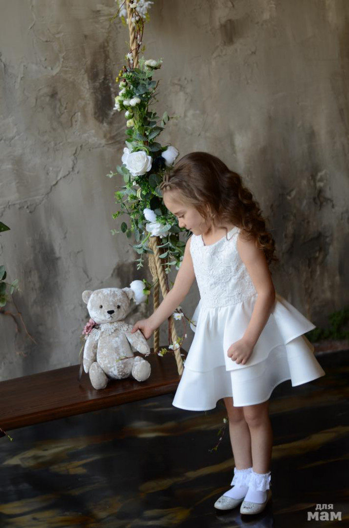 Основа платья из матового атласа с нежным кружевом макраме со стразами по лифу. Подклада из 100% хлопка. Возможно изготовление платья по индивидуальным размерам.