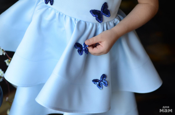 Модель "Лара" из матового атласа с нежной хлопковой подкладкой, украшено декором из бабочек, расшитых пайетками. Возможно изготовление в другом цвете и по индивидуальным размерам. Цена зависит от роста: