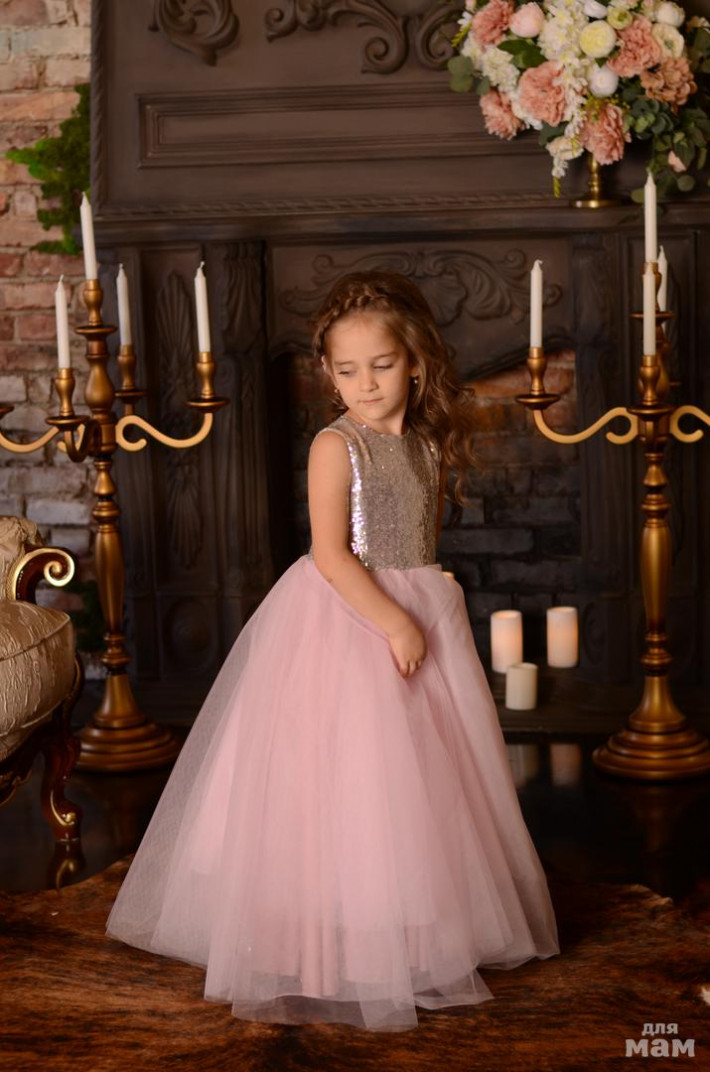 Модель платья "Эмили" сочетает в себе блеск пайеток и нежность легкой, воздушной юбочки из еврофатина. Подклад платья полностью состоит из марсеризованого хлопка - очень мягкого и комфортного телу ребенка. По желанию можно изменить цвет юбки, добавить бант. Цена зависит от роста ребенка:
