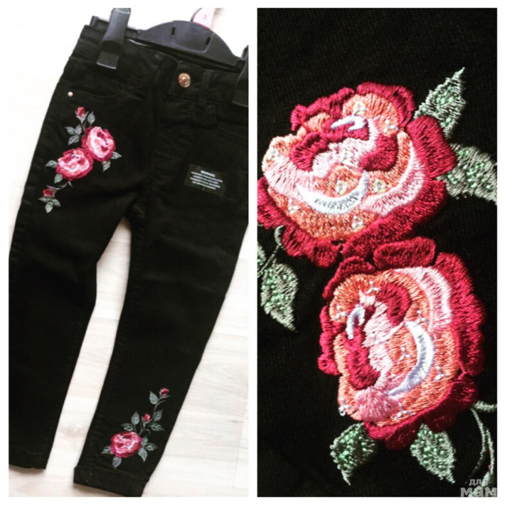 Очень красивые джинсы, цвет-черный, розы-вышивка!!