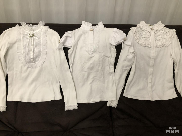 Продаю сетом 3 кофточки: Две кофточки с длинным рукавом р.146, с коротким р.152(маломерит на р.146) в хорошем состоянии. Из нюансов только нехватает камней на украшении короткого рукава.