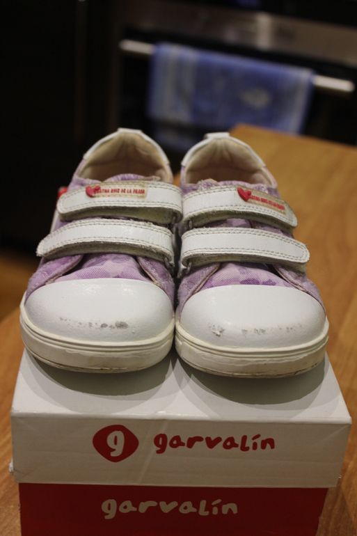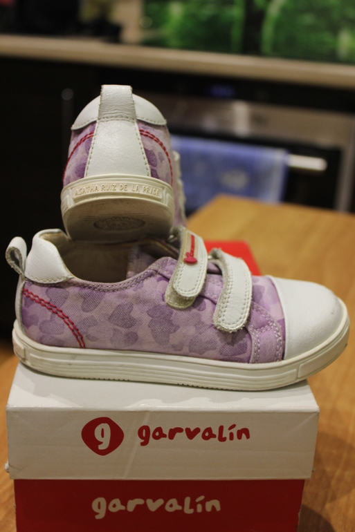 Garvalin, кожаные кеды, очень удобные, носим этой фирмы такие кеды, уже третий год, и дочка влюблена в них, на самом деле в очень хорошем состоянии, но при кататнии на беговеле сразу оцарапали нос, 400