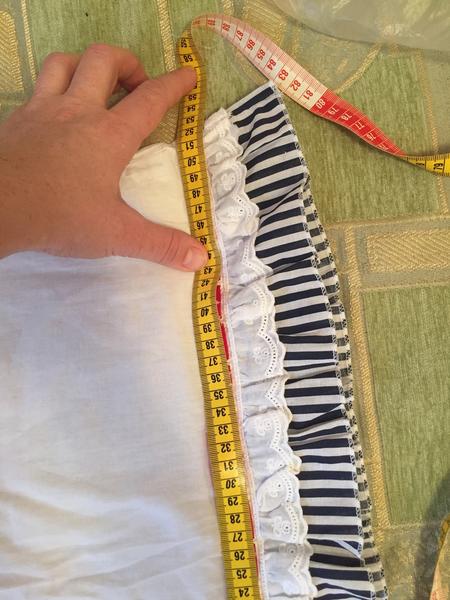 Модель выполнена из тонкой хлопковой ткани с принтом в сине-белую полоску