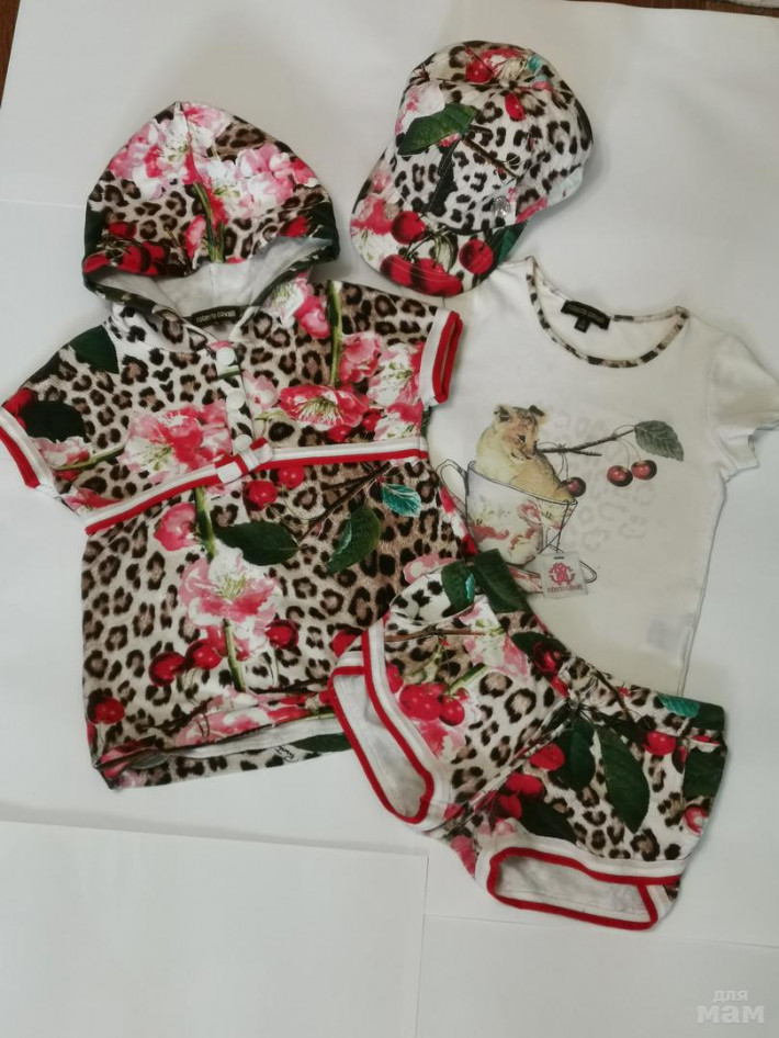 1Roberto Cavalli марк. 5(115) Комплект фельпа, шорты, кепка, футболка со львом (футболка марк. 3 (100), но на 5-6 лет подходит)