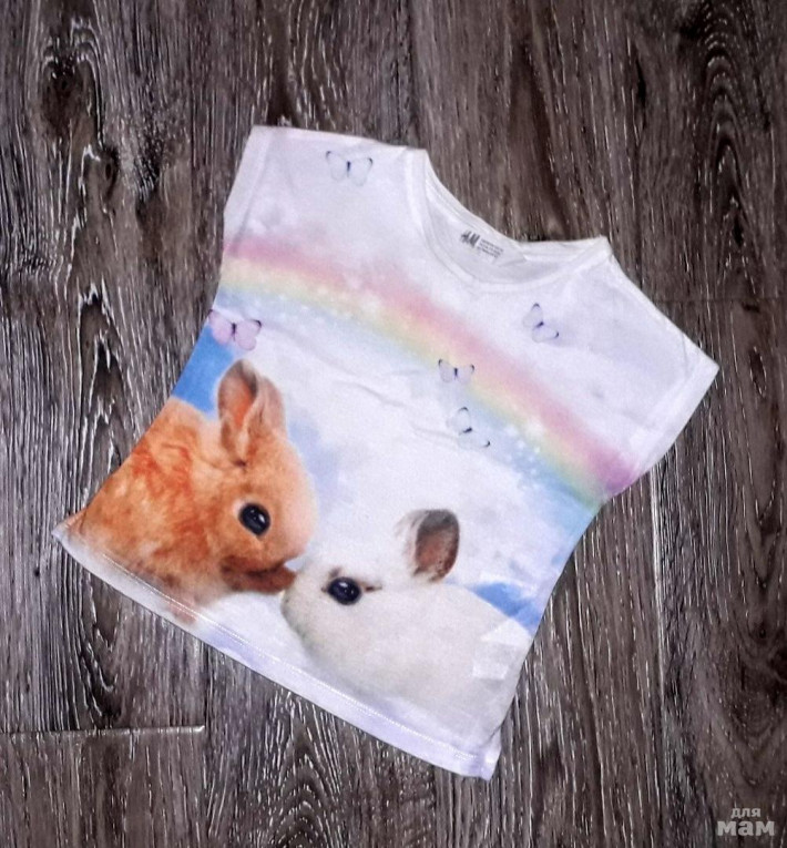 Футболка H&M (Швеция) р.3/4 (98-104). Коллекция 2018 г. Хлопок 100%. Рисунок мимишные кролики. Потрясающее качество.