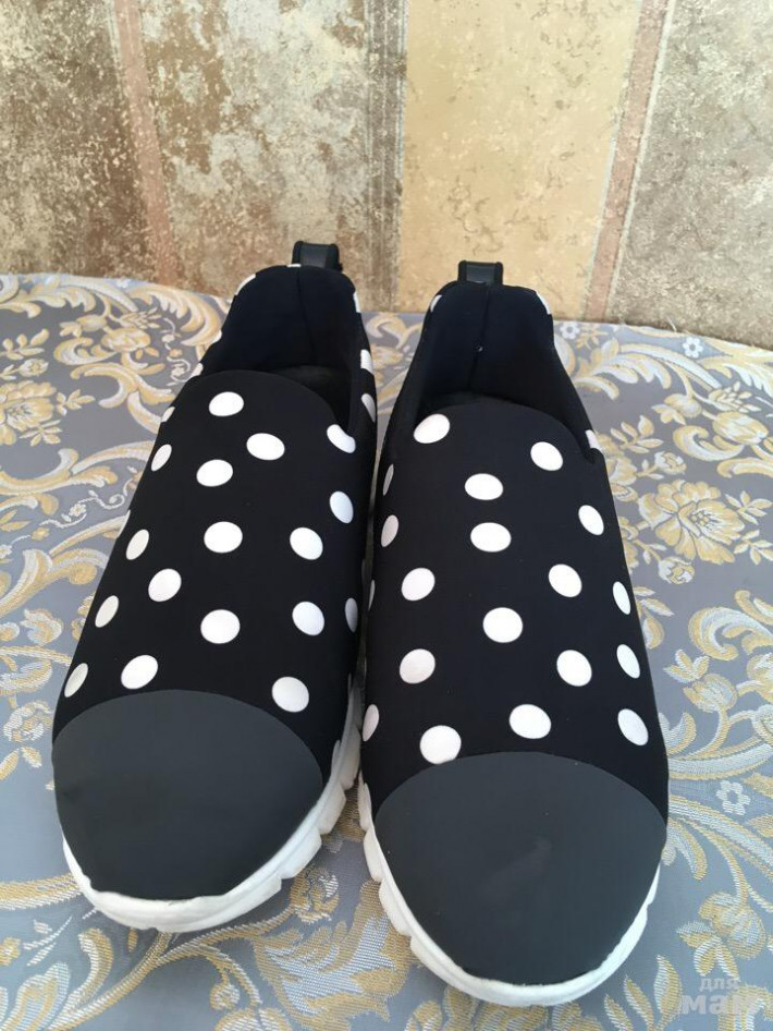 Кроссовки мягкого неопрена , дополнено эластичной вставкой с кожаной петлей на заднике и прорезиновой вставкой на мыске. Рельефная гибкая подошва и мягкая подкладка гарантируют комфортную носку.Очень удобные и легкие.Мысок укреплен,светоотражающий,как мы заметили.размер 34.Состояние хорошее
