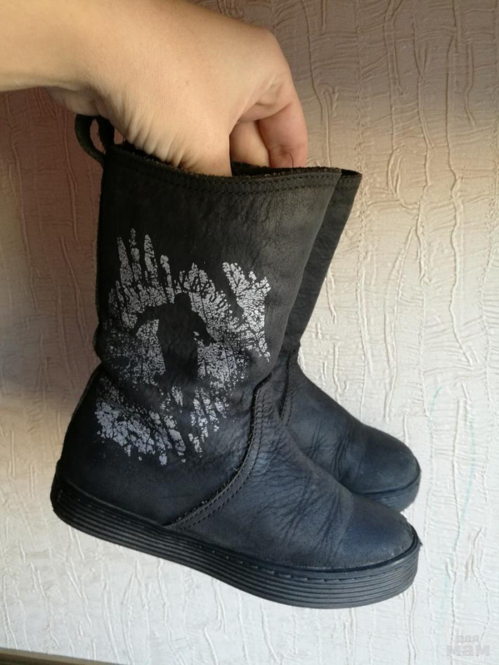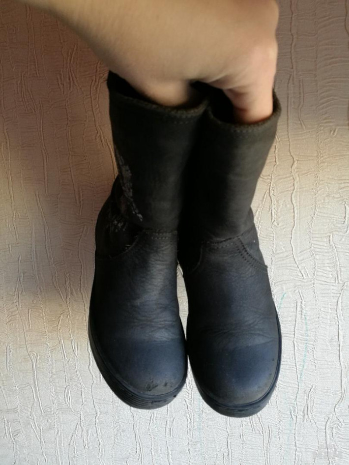 В хорошем состояии, фактически без нюансов кроме маленького содранного момента на правом сапожкн (на фото), при носке не заметно вообще, сфотографировала максимально , чтоб было видно. Внутри мех, сверху нубук!