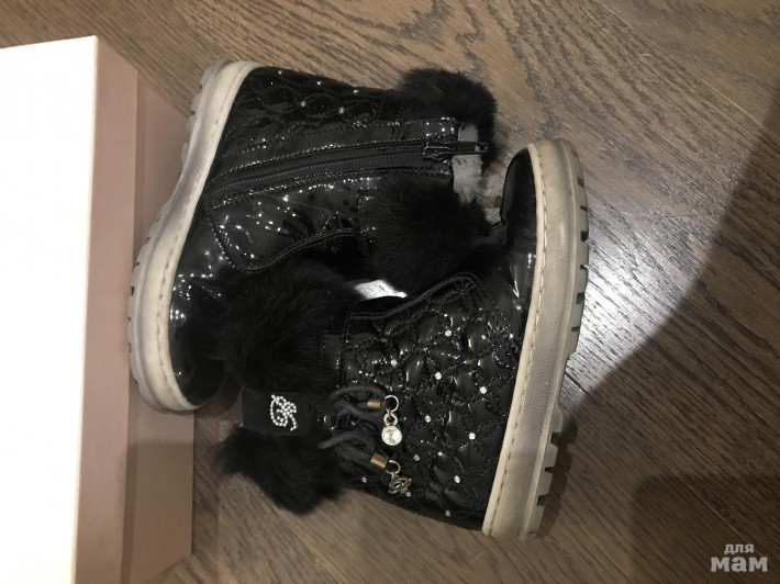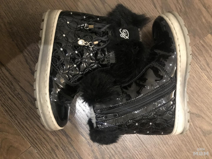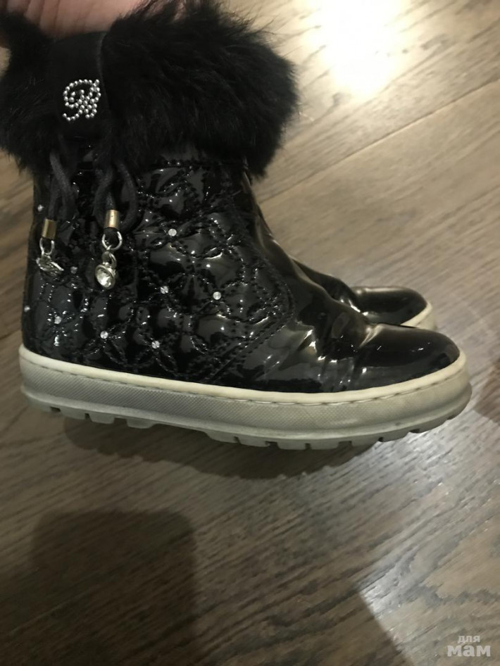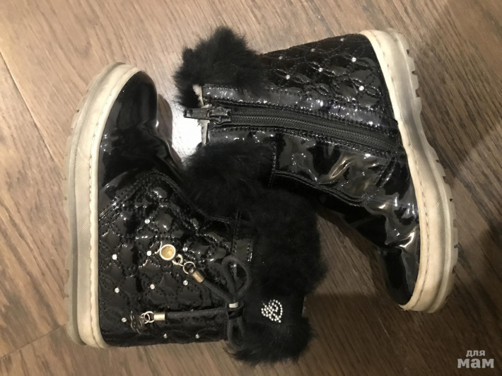 25 размер, на меху, в идеале, одевались только на выход под пальто, есть коробка. Нет одного стразика на висюльке, фото прилагаю.