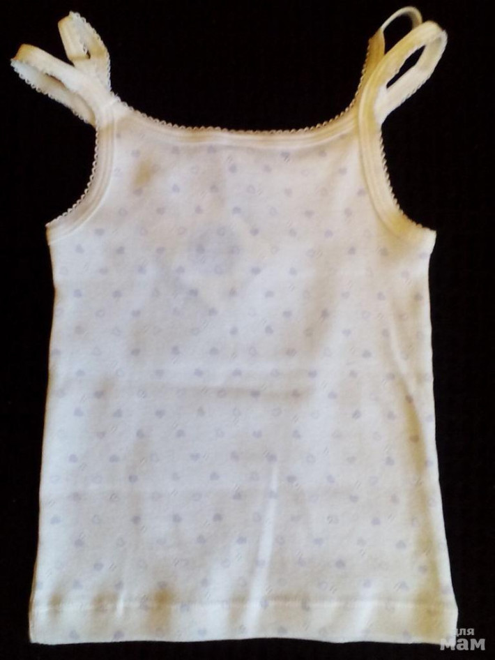 Абсолютно новая с этикеткой майка Sanetta белая, с сердечками, украшена бантиками с камешками. Германия размер 92 см. Состав хлопок/эластан 95/5. Экохлопок.