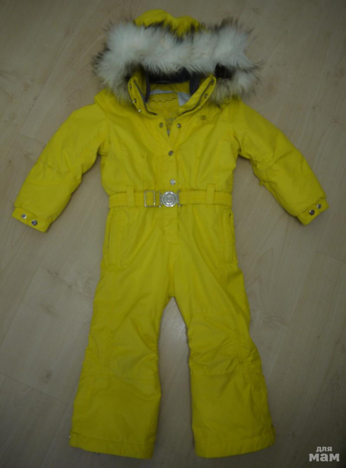 Комбинезон в хорошем состоянии, потертости есть внизу между ног. Краги окрасились от подъемника во время катания на горных лыжах (в машинке не отстирались). Размер 4 года.