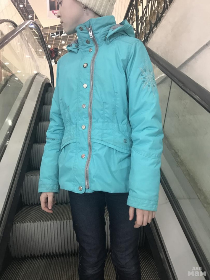 Куртка мембрана, цвет aqua (морской волны) размер 12, реально до 152, мы носили от 140. Пояса нет. Внутри на талии утяжка.