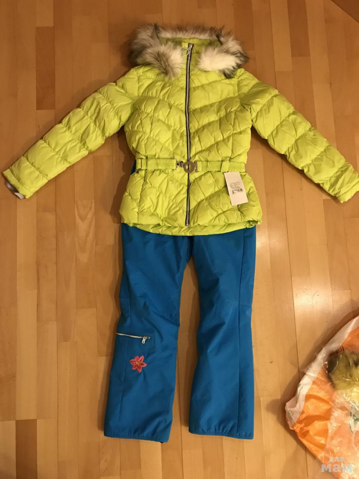 Пуховик лимонного цвета, р. 12, не новый, фото старое. Брюки Богнер тоже в наличии
