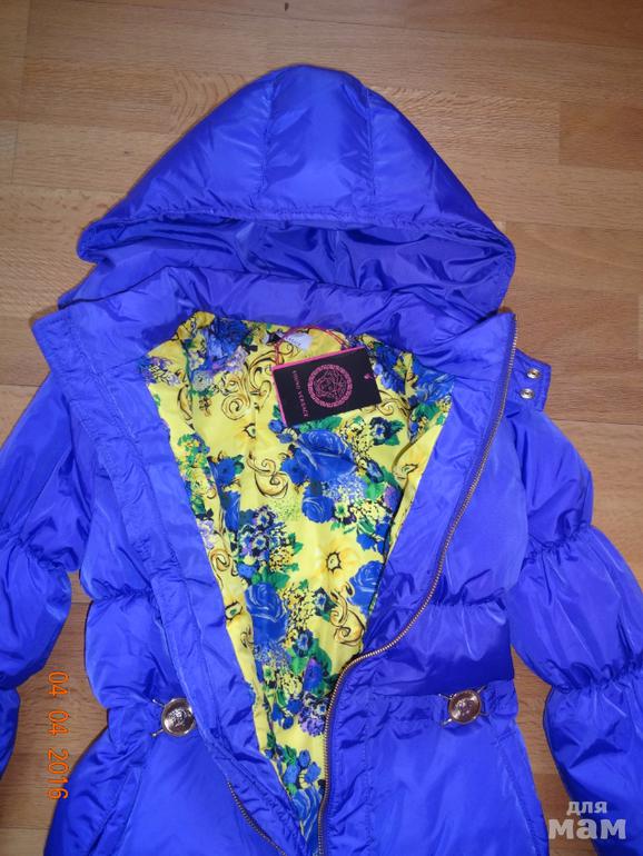 Зимний пуховик Версаче р. L ( р. 10)Очень теплый,набит отлично! Цвет ФИОЛЕТОВЫЙ ! но на фото не получается((можно носить с роста 130 и дальше. З