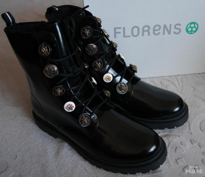Флоренс F6346 БОТИНКИ ЧЕРНЫЕ ШНУРКИ/ПУГОВИЦЫ +байка