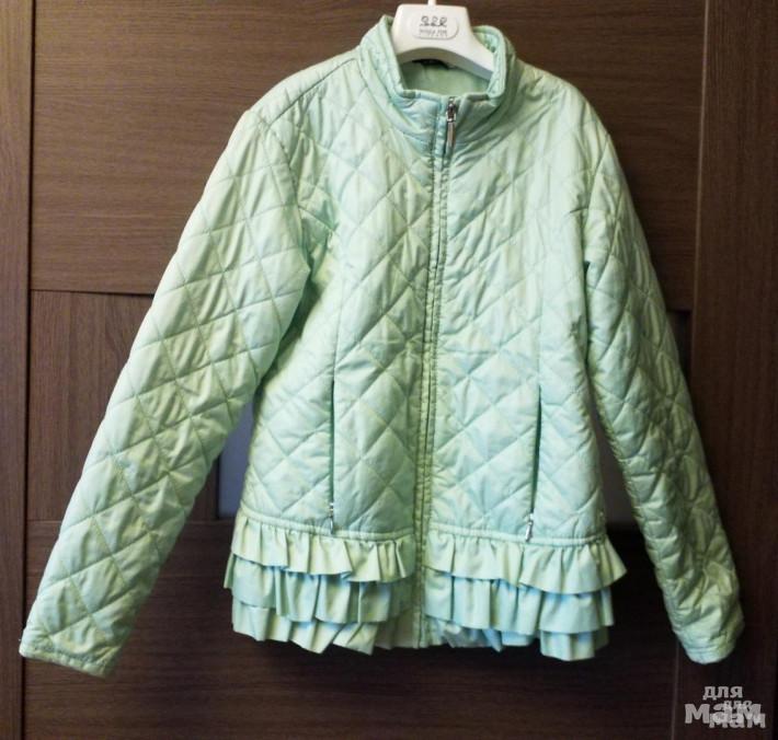Шикарная лёгкая куртка Mayoral размер 9-134см. Испания. На тонком утеплителе, на теплую весну, холодное лето. Цвет светло зелёный, очень красивый, фото не передаёт (нежная мята/лайм). На молнии, два кармана на молнии, воротник стоечка, низ украшен рюшами, стеганная. Состояние отличное, б/у. Наша любимая модель, носим из года в год. На стройную девочку.