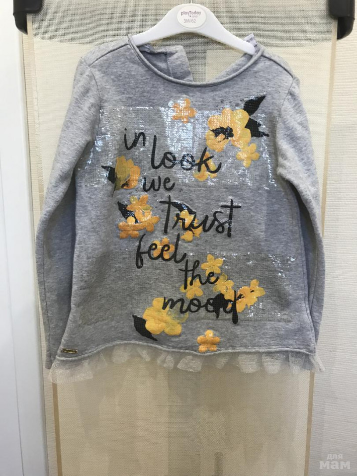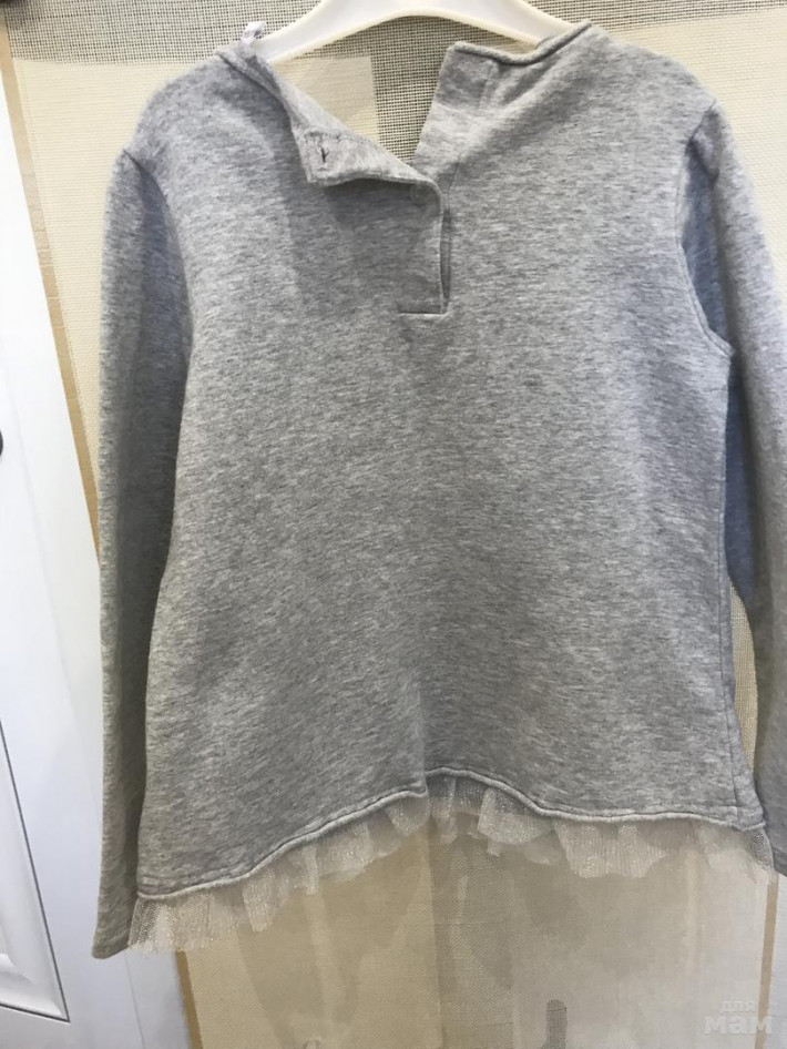 Тепленький свитшот,носили но в целом состояние хорошее.утеряна пуговка сзади.р.4 но большемерят на 5. Отдам за 500р