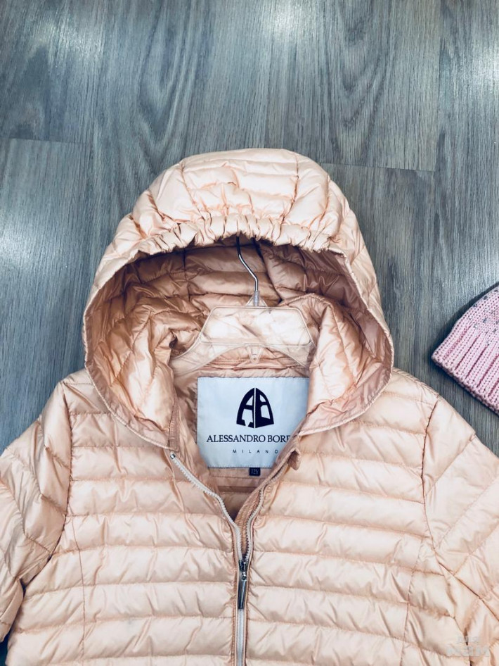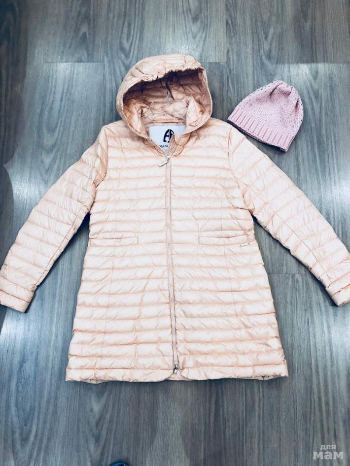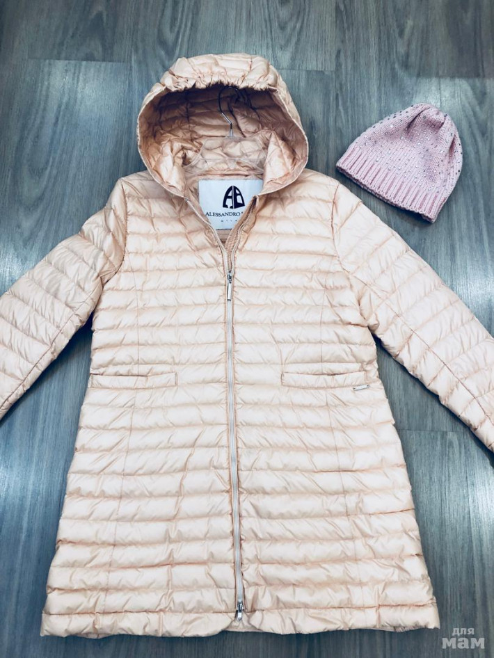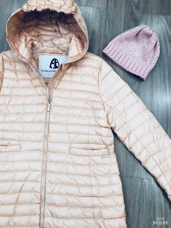 Пальто Борелли, пух, тонкое и теплое, весна-осень, очень нежное, бледно-розовое, новое, 4500 р. К пальто в подарок розовая шапочка со стразами и снуд новый Чобби с розовым шарфиком. Целый комплект на весну-осень. Цена закупки пальто, один снуд с шапочкой стоили 2000 р.