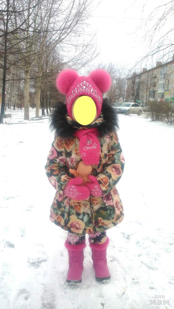 Очень красивый комплект для принцессы, шапочка и варежки утеплены синтепоном, внутри хлопковый подклад.
