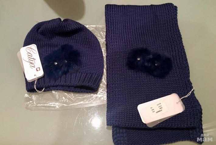 Шапка + шарф. Новые. Меринос, двойная нить, украшения-цветы из натурального меха.