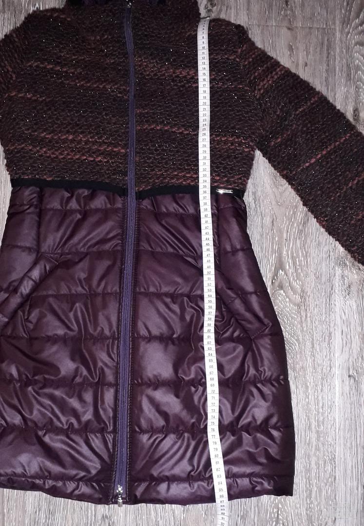 НОВОЕ пуховое пальто RINASCIMENTO (Италия) р.XS (42). Красивый баклажановый цвет. Наполнитель синтепух. Очень красивый декор из меланжированной шерсти крупной вязки с металлизированной нитью. Рукава с трикотажными манжетами. Фурнитура брендированная. На рост до 160. Покупала за 12500. Отдам со скидкой 60%🔥🔥🔥
