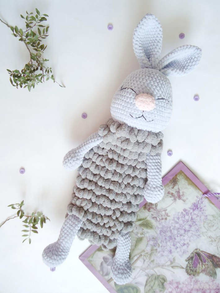 Длина зайчика-пижамницы - около 65 см. Мешочек затягивается шнуром с фиксатором.