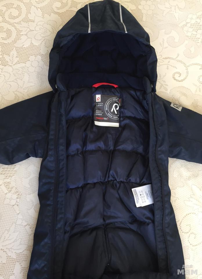Комбинезон зимний, пух/перо. Состояние нового. Можно одевать гораздо раньше, так как есть возможность использовать как мешок, что теплее и нет необходимости в обуви для малыша не умеющего ходить. Хорошая, плотная ткань.