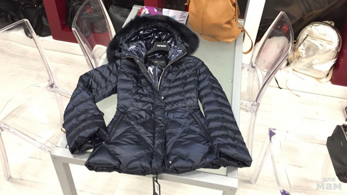 Шикарный пуховик Итальянской марки Flo&clo цвет синий , с переливом , мех лисы очень густой
