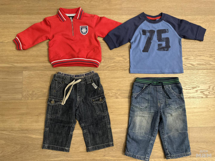 Футболка Next и джинсы на флисе Mothercare р.68-74 и Толстовка GF и джинсы Fox р.68-74 состояние новых вещей за все 1700=