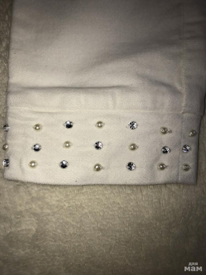 Красивые вельветовые брючки молочного цвета, украшены бусинками и стразами. Размер указан - 4г, модель немного укороченная, поэтому лучше с 3х л. Состояние отличное..