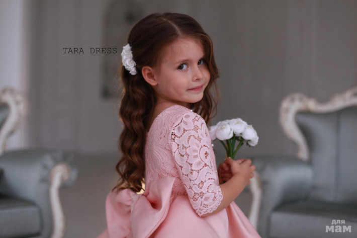 Очень красивое нарядное платье "Мия" в нежно персиковом цвете из матового атласа и кружевного топа. Кружево очень мягкое и нежное - не колется. Цена зависит от роста ребенка. Шьем под заказ по индивидуальным размерам.