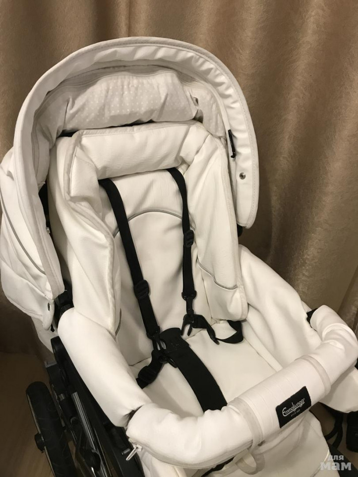 Emmaljunga Mondial Duo Combi - Люлька и Прогулка. 2 в 1 БЕЛАЯ - White Leatherette (материал ЭКО - кожа) , Шасси Classic Chrome.