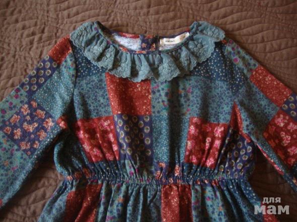 Маркировка 4-5 лет на 104-110р. сядет хорошо.Состав-100% хлопок. Верх у платья очень приятный на ощупь, как тонкая баечка. Состояние прекрасное, одевали пару-тройку раз на мероприятия.