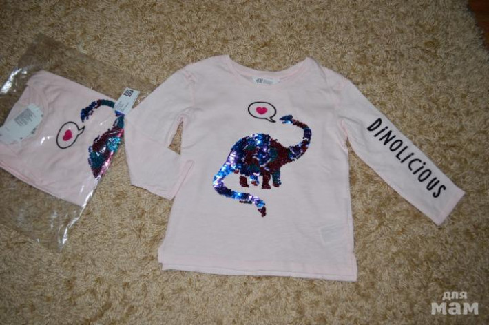 Топ из хлопкового трикотажа с рисунком из двухсторонних пайеток спереди. Длинные рукава с пришитыми отворотами снизу. Разрез и необработанный край снизу, спинка немного удлинена. Смотрится красиво-дорого-стильно, мечта любой девчонки! Покупала за 749р. Новый в фирменном пакете. маркировка 134-140