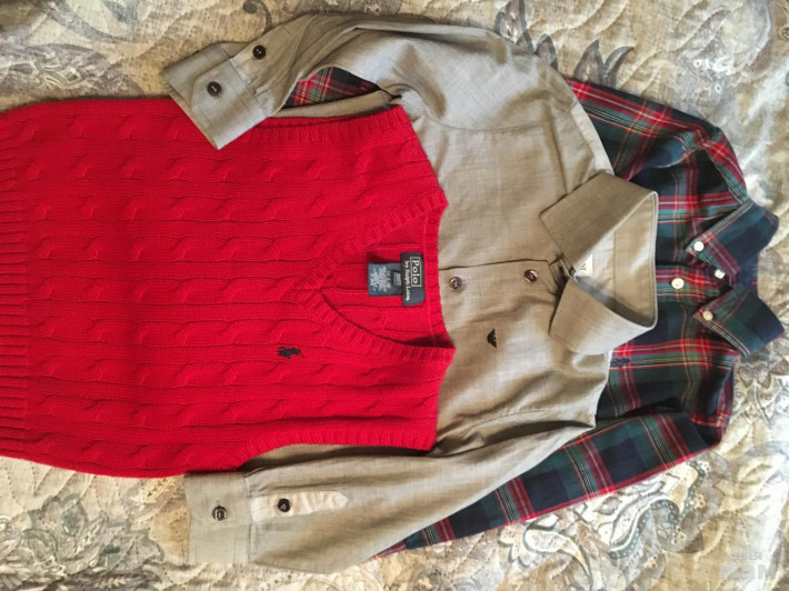 Серая рубашка Armani 2 года-800 рублей. Рубашка и жилет RL 1500