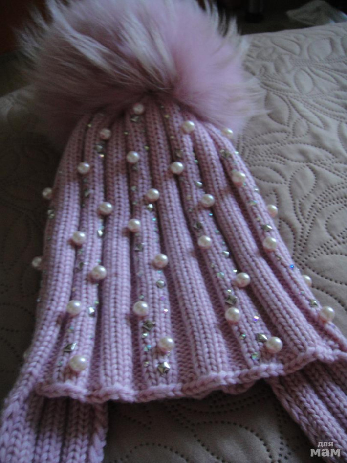 Красивая,теплая зимняя шапка ,связанная на заказ. Б\у - 2 раза и мала дочке. Связана из итальянского мериноса,в две нити. Размер на 52-55. Богатые игольчатые пунпоны на шапке,уши всегда закрыты.