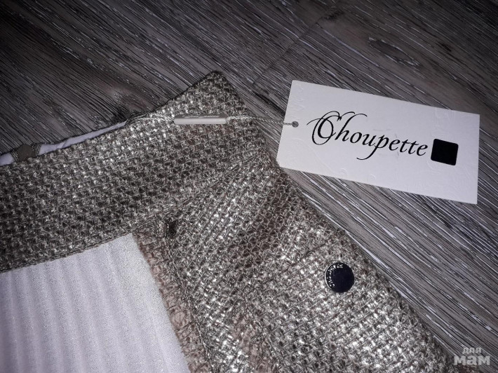 Очень красивая и необычная расклешеная юбочка CHOUPETTE (Франция) р. 98-104-110. Золотистого цвета, ткань фактурная, имитация рогожки, спереди плиссе из шифона, украшена двумя накладными карманами, сзади застежка молния, внутри на хлопковом подкладе. Декор: бахрома, пуговицы и навесная бабочка из металла. Есть регулировка ширины(утяжка). Состав: акрил 56%, полиэстер 28%, шерсть 10%, вискоза 6%. Я влюбилась в нее с первого взгляда. 😃🤩😍 Одета 2 раза.