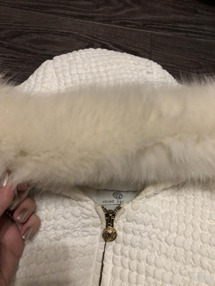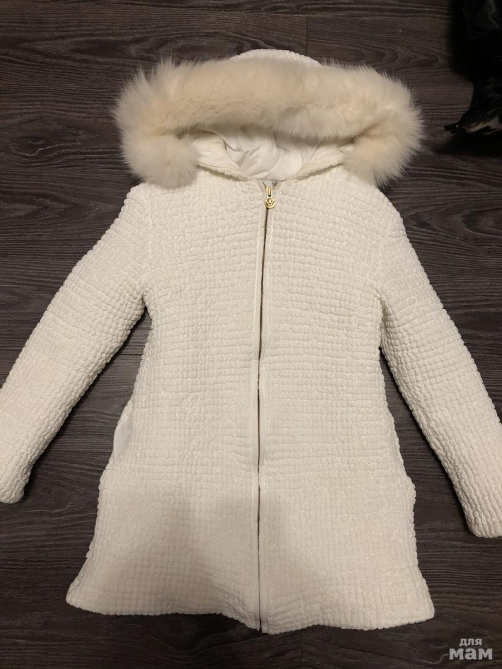 Пятен нет это тень, состояние очень хорошее, скорее еврозима, сядет на любую фигуру за счёт того что простегано. Мех натуральный отстегивается