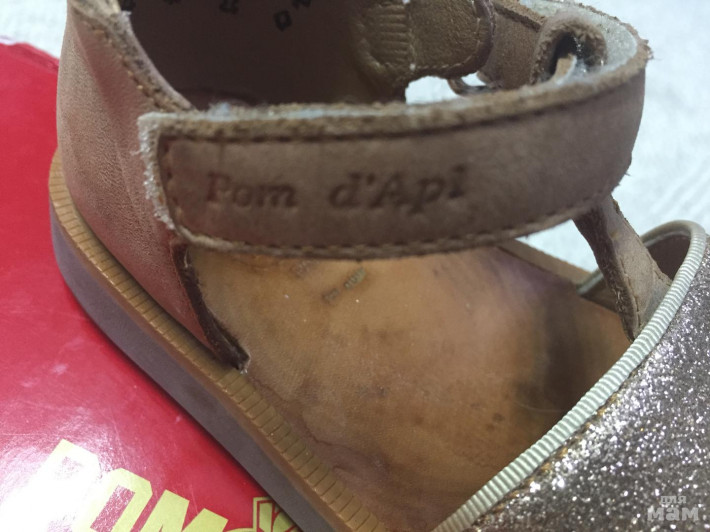 кожаные PARIS сандалии POM D'API. Застёжка липучка,глиттер, двухцветный узор, скругленный носок, внутри кожа, резиновая подошва с тиснением, без каблука. Состояние отличное