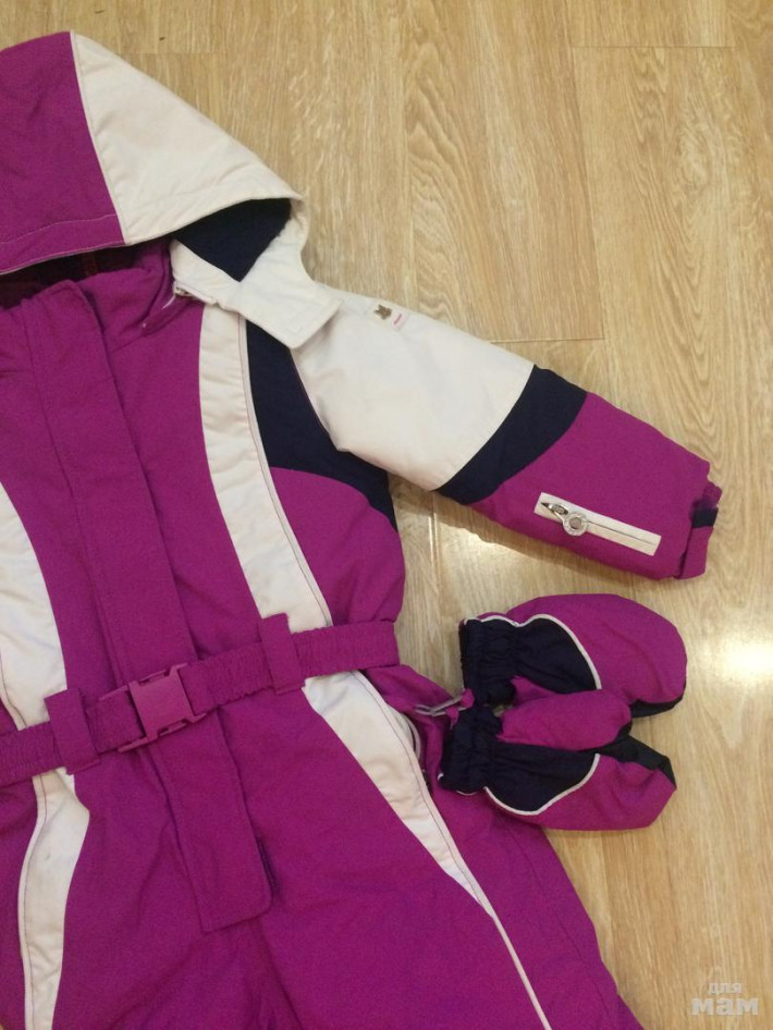 Комбинезон очень хорошего качества, Яркий, ткань непродуваемая и непромокаемая. В состоянии нового. Надет считанные разы, так как было несколько комбинезонов. в комплекте с рукавичками.