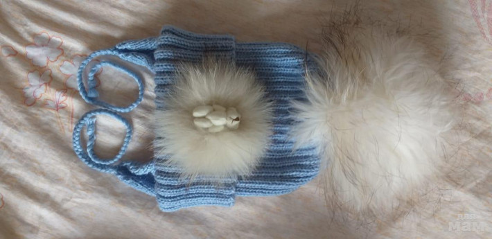 Шапка зима, на ОГ 50-54. Меринос экстафайн. Огромный пумпон